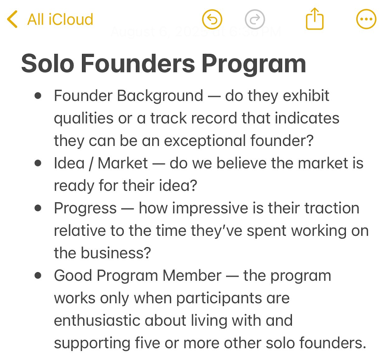 Here’s what we look for when selecting founders for SFP: